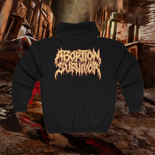 Abortion Survivor Logo Full Zip Hooded Sweatshirt